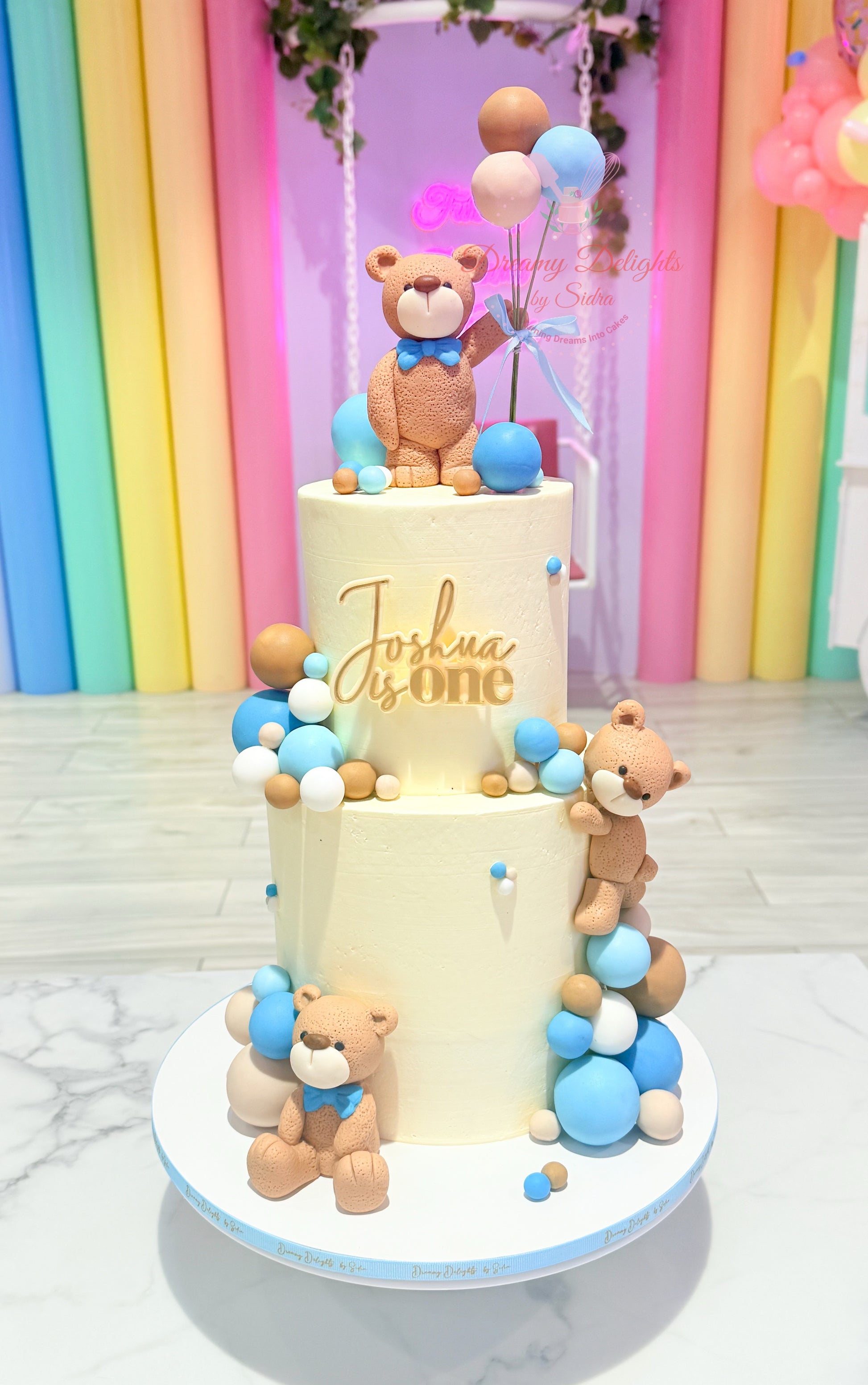 Celebrate your little one’s milestone with the adorable Teddy 1st Birthday Cake, perfect for a memorable boys first birthday cake. Featuring a cute teddy bear design and a custom cake badge displaying your child’s name and age, this cake makes the occasion truly special. Please note, a minimum of 3 days’ advance notice is required to customize the badge, so kindly order early.