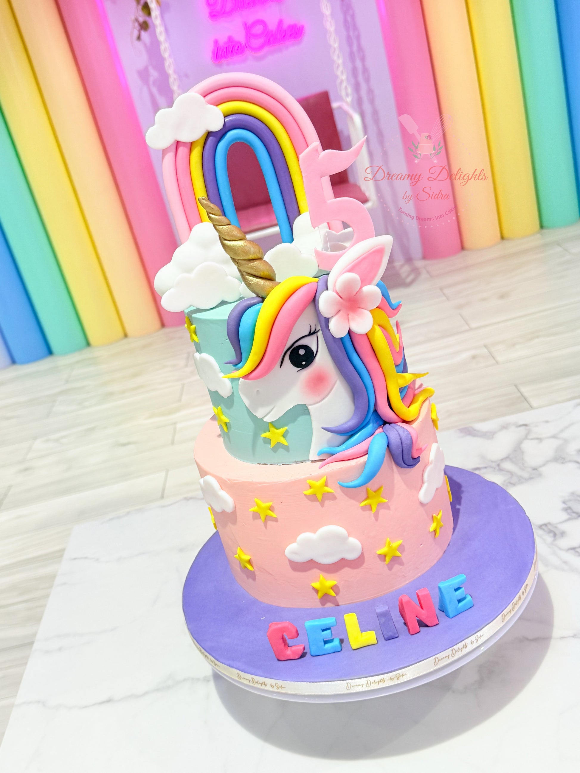 - Handcrafted Unicorn birthday cake with detailed fondant design